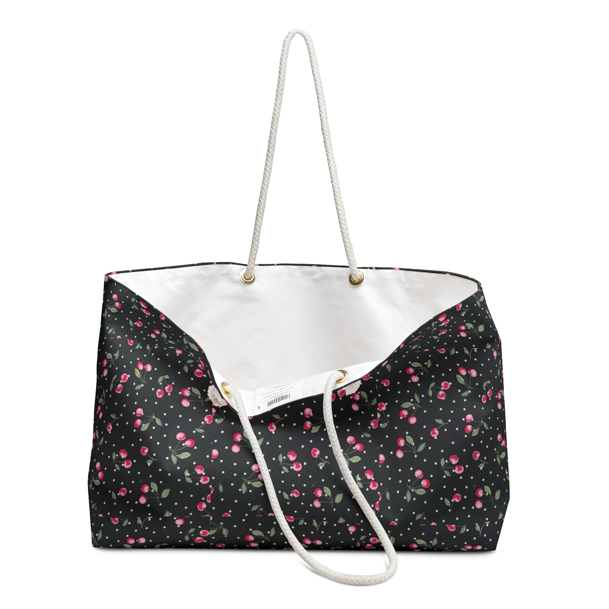 Cherry Print Weekender Bag, Summer Picnic Cherry Pattern | Tote Travel Bag