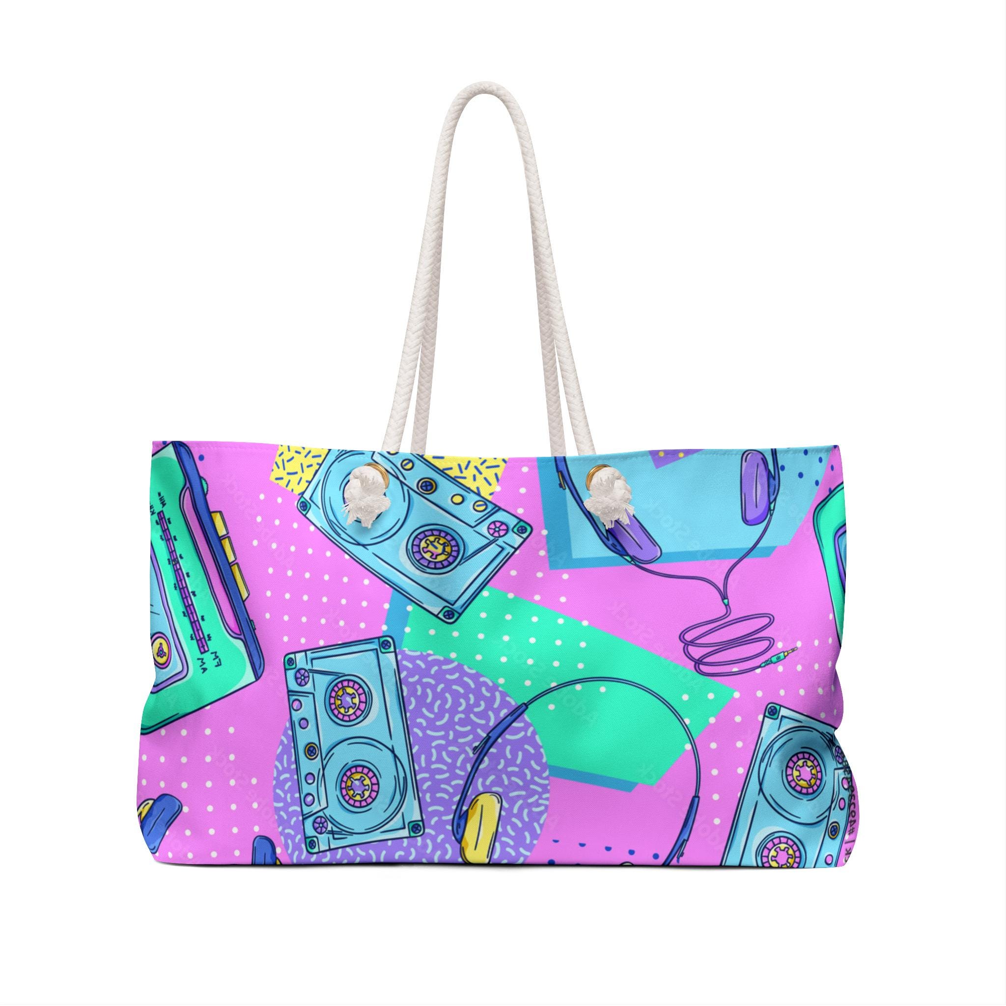 80s Retro Throwback Weekender Bag | Vintage Neon Stripes, Retro Travel Bag