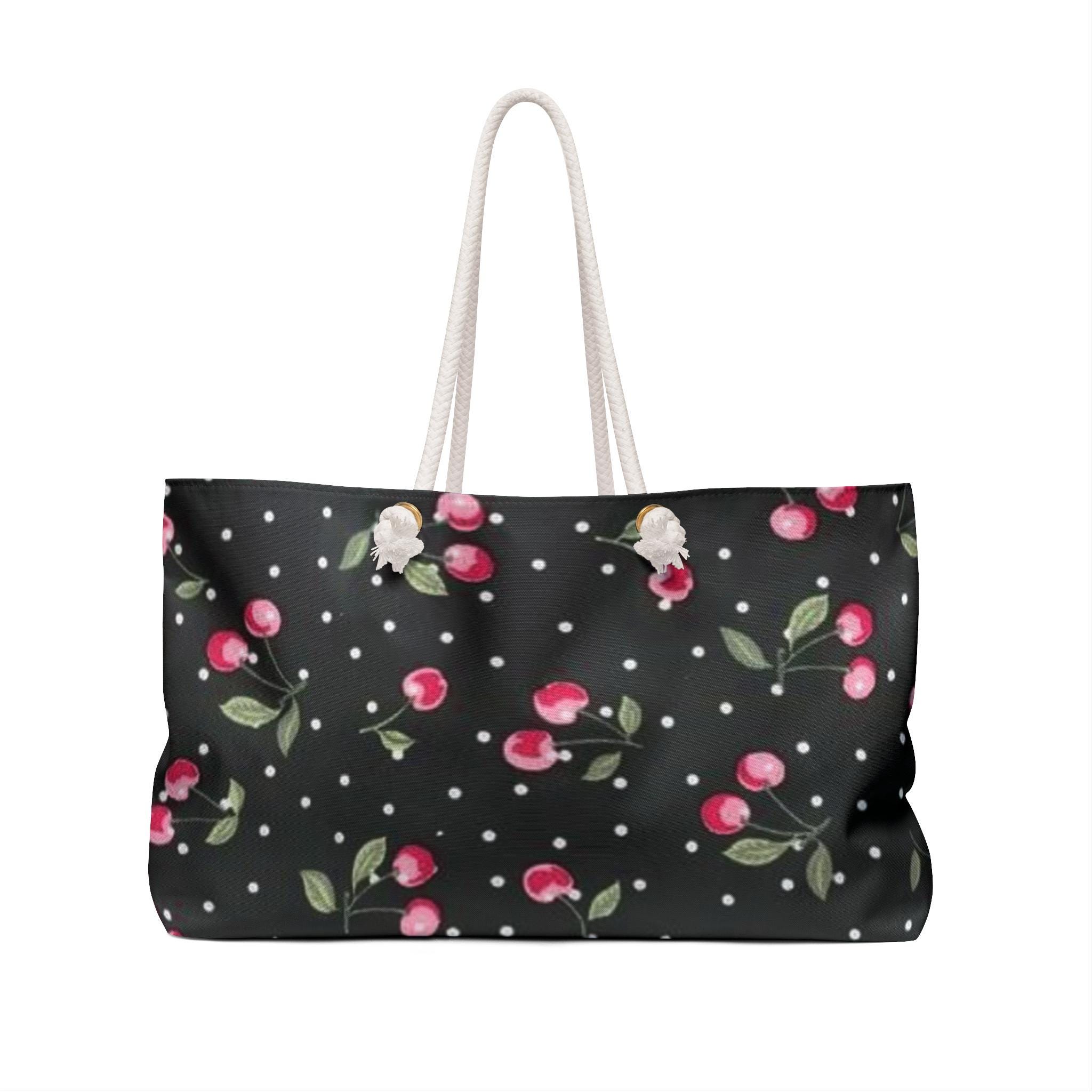 Cherry Polka Dot Weekender Bag | Black Cherry Pattern Tote
