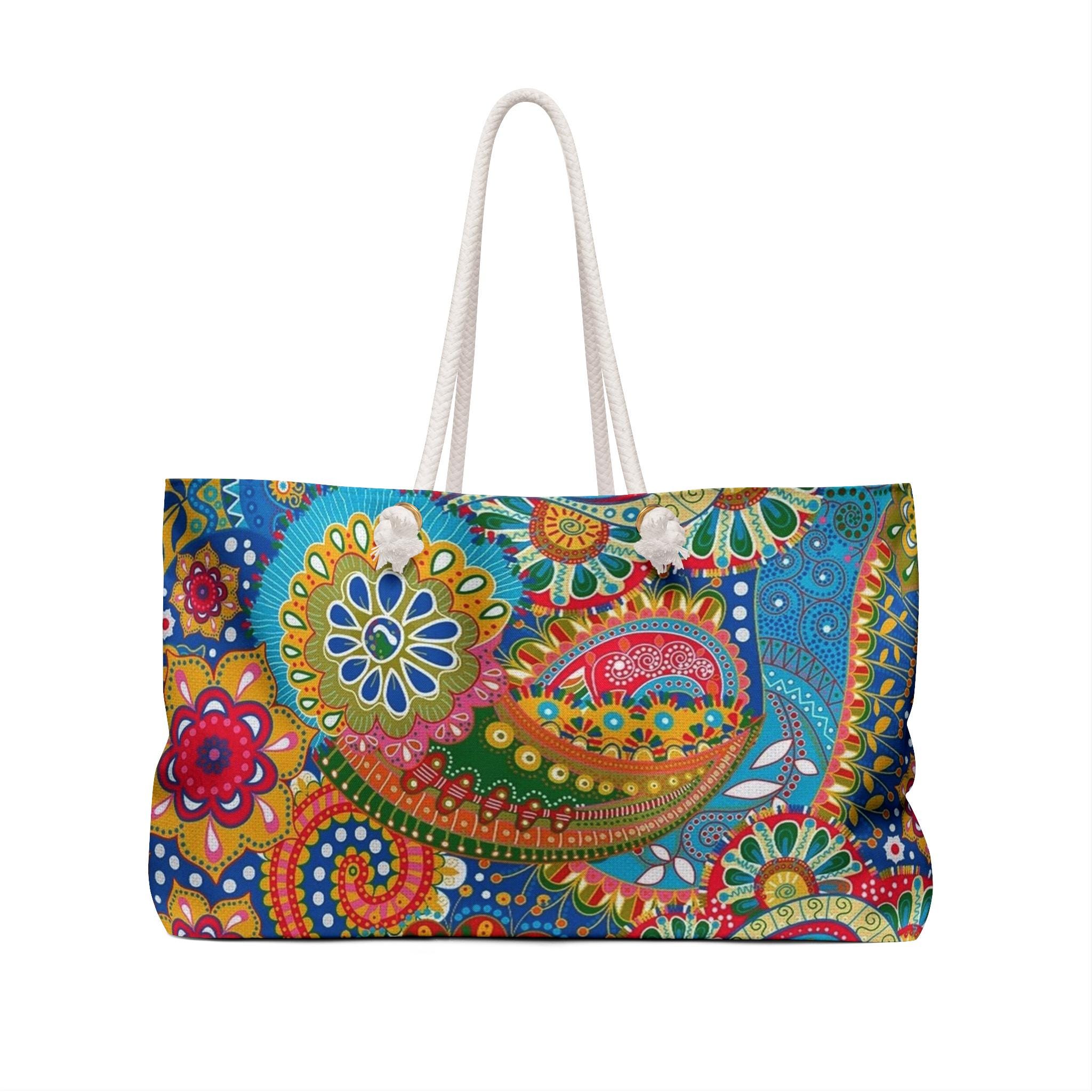 Colorful Paisley Floral Weekender Bag | Boho Travel Tote